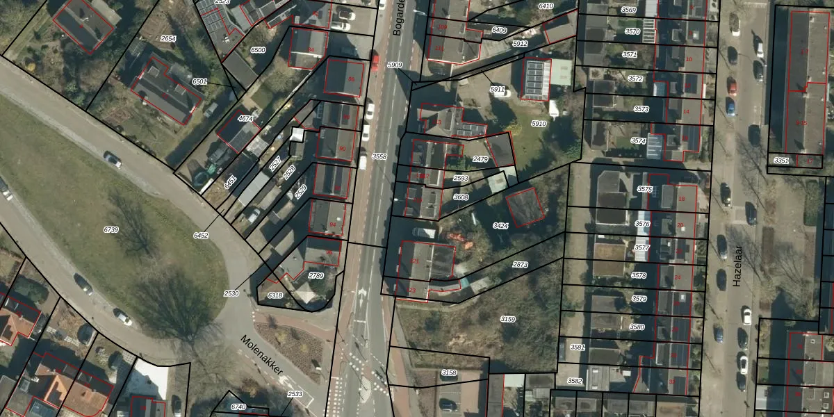 Gebruik de zoekbalk of klik op een perceel voor informatie over de adressen binnen dit perceel.