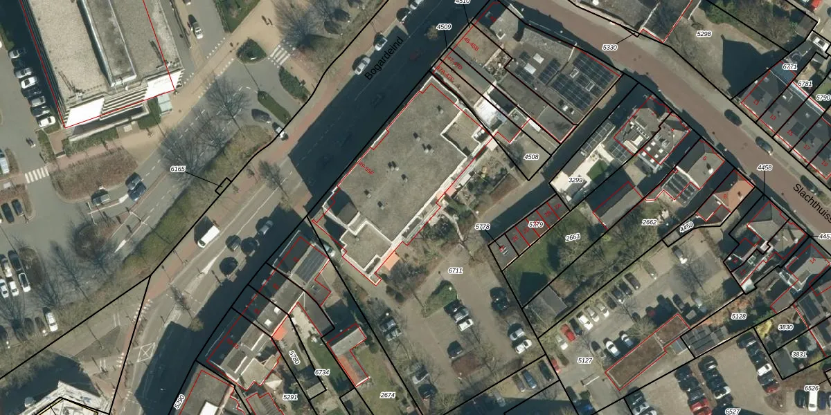 Bogardeind 55-A is gelegen op kadastraal perceel GDP00D6711. Deze kadastrale aanduiding is uniek en wordt gebruikt door het Kadaster om eigendomsrechten en andere zakelijke rechten vast te leggen. Het perceel maakt onderdeel uit van de kadastrale gemeente Geldrop.