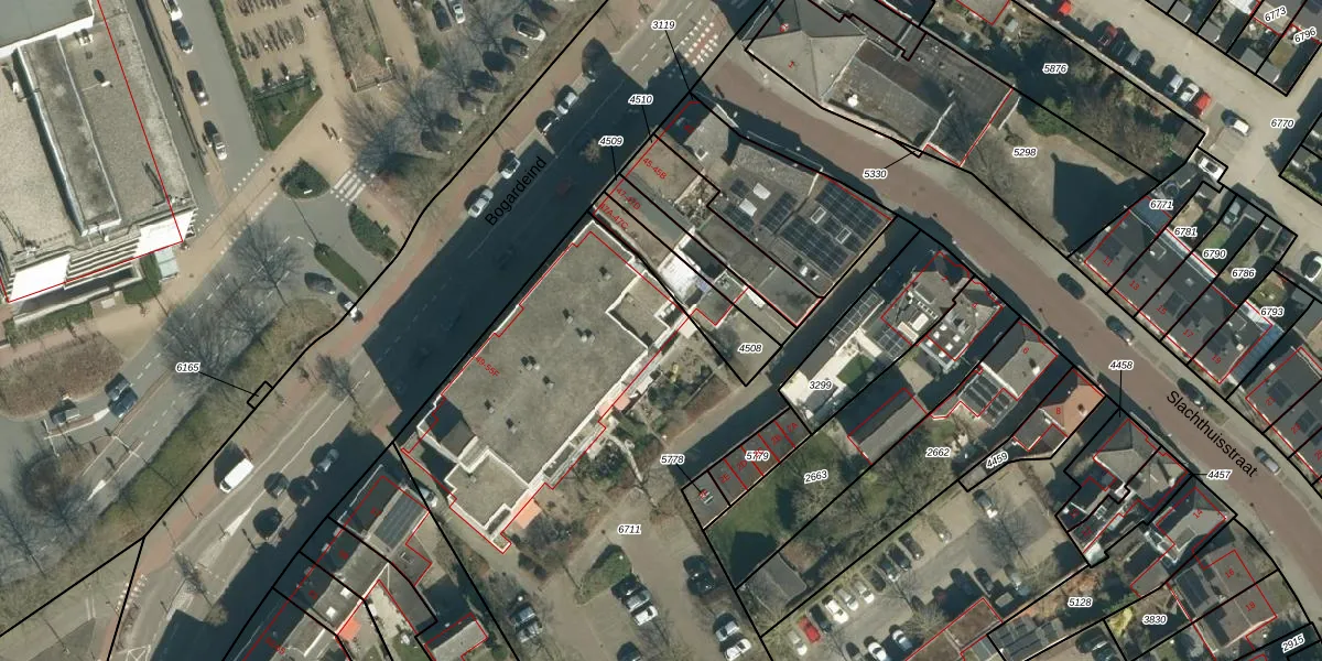 Bogardeind 55-D is gelegen op kadastraal perceel GDP00D6711. Deze kadastrale aanduiding is uniek en wordt gebruikt door het Kadaster om eigendomsrechten en andere zakelijke rechten vast te leggen. Het perceel maakt onderdeel uit van de kadastrale gemeente Geldrop.