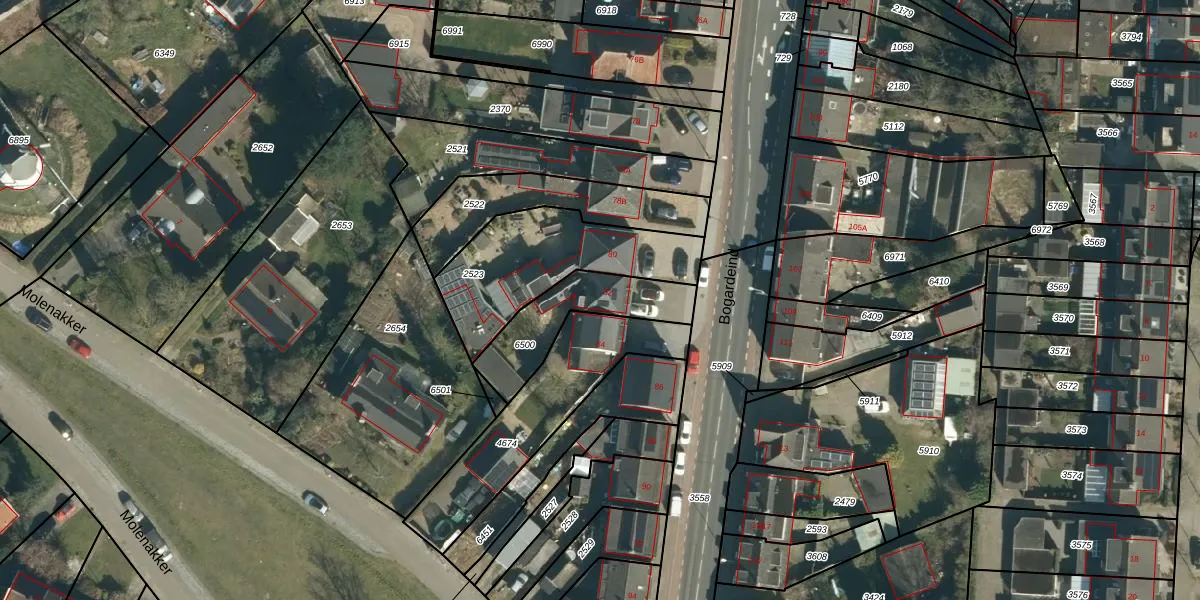 Bogardeind 82 is gelegen op kadastraal perceel GDP00D6500. Deze kadastrale aanduiding is uniek en wordt gebruikt door het Kadaster om eigendomsrechten en andere zakelijke rechten vast te leggen. Het perceel maakt onderdeel uit van de kadastrale gemeente Geldrop.