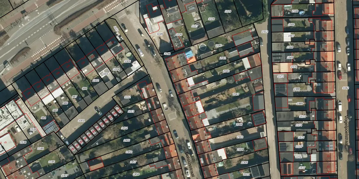 Het perceel waarop Bolsiusstraat 30 staat heeft een oppervlakte van 354 m². Dit is een groot perceel. De perceeloppervlakte wordt geregistreerd door het Kadaster. Gedetailleerde informatie over de maten van dit perceel kunt u vinden in het rapport Kadastrale kaart met maatvoering van Bolsiusstraat 30.
