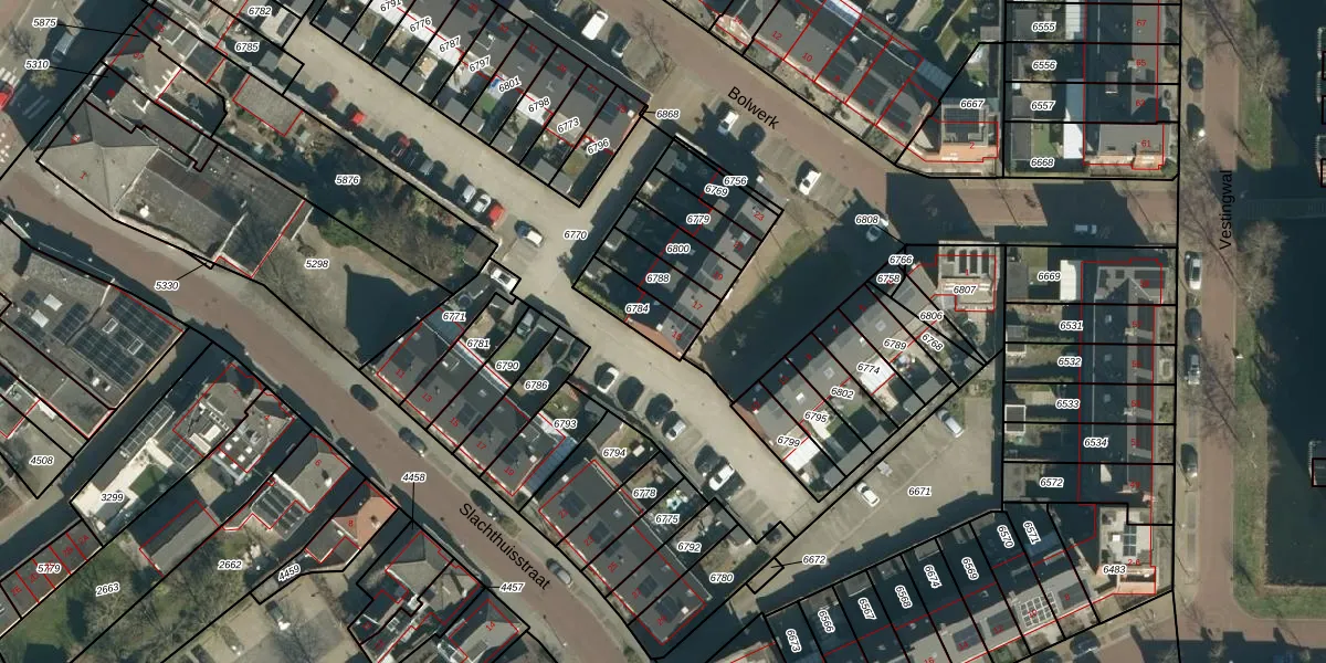 Het perceel waarop Bolwerk 15 staat heeft een oppervlakte van 112 m². Dit is een middelgroot perceel. De perceeloppervlakte wordt geregistreerd door het Kadaster. Gedetailleerde informatie over de maten van dit perceel kunt u vinden in het rapport Kadastrale kaart met maatvoering van Bolwerk 15.