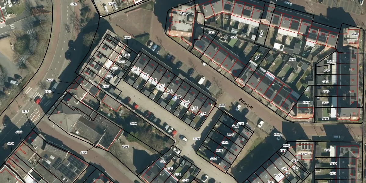 Het perceel waarop Bolwerk 31 staat heeft een oppervlakte van 99 m². Dit is een klein perceel. De perceeloppervlakte wordt geregistreerd door het Kadaster. Gedetailleerde informatie over de maten van dit perceel kunt u vinden in het rapport Kadastrale kaart met maatvoering van Bolwerk 31.