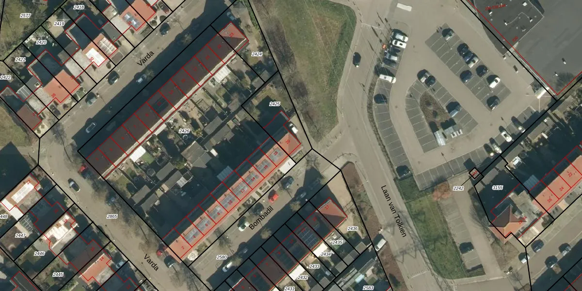 Bombadil 20 is gelegen op kadastraal perceel GDP00E2425. Deze kadastrale aanduiding is uniek en wordt gebruikt door het Kadaster om eigendomsrechten en andere zakelijke rechten vast te leggen. Het perceel maakt onderdeel uit van de kadastrale gemeente Geldrop.