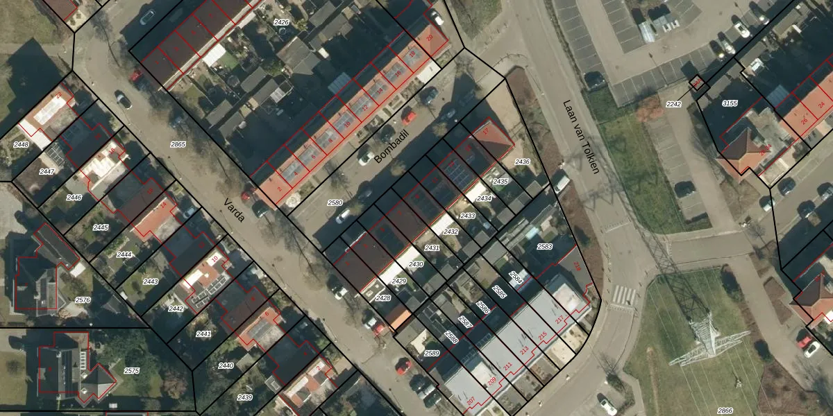 Gebruik de zoekbalk of klik op een perceel voor informatie over de adressen binnen dit perceel.