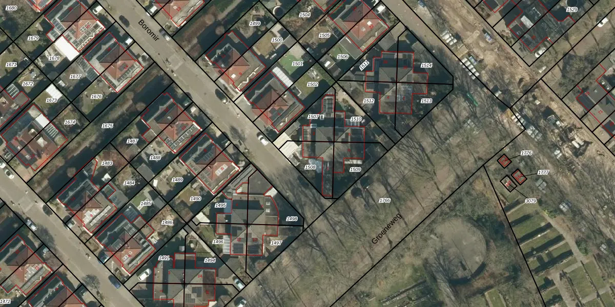 Boromir 1 is gelegen op kadastraal perceel GDP00E1508. Deze kadastrale aanduiding is uniek en wordt gebruikt door het Kadaster om eigendomsrechten en andere zakelijke rechten vast te leggen. Het perceel maakt onderdeel uit van de kadastrale gemeente Geldrop.