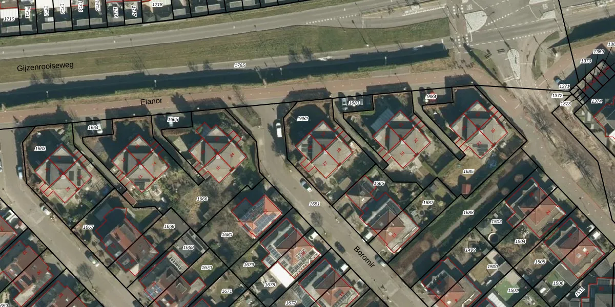 Het perceel waarop Boromir 19 staat heeft een oppervlakte van 597 m². Dit is een groot perceel. De perceeloppervlakte wordt geregistreerd door het Kadaster. Gedetailleerde informatie over de maten van dit perceel kunt u vinden in het rapport Kadastrale kaart met maatvoering van Boromir 19.