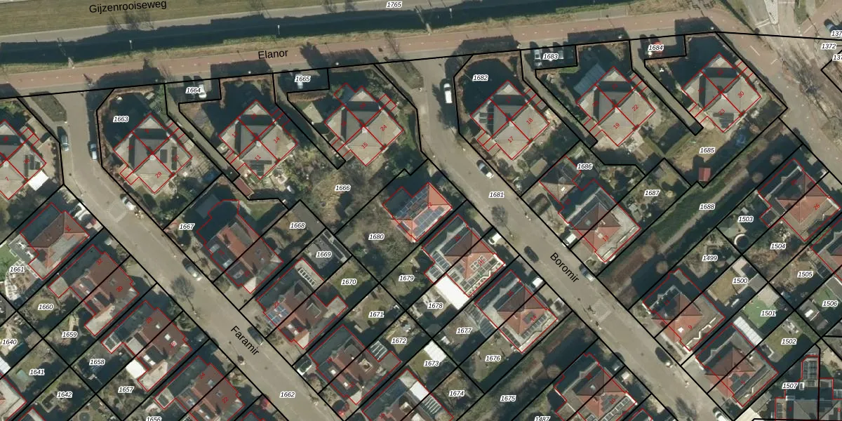 Het perceel waarop Boromir 22 staat heeft een oppervlakte van 436 m². Dit is een groot perceel. De perceeloppervlakte wordt geregistreerd door het Kadaster. Gedetailleerde informatie over de maten van dit perceel kunt u vinden in het rapport Kadastrale kaart met maatvoering van Boromir 22.