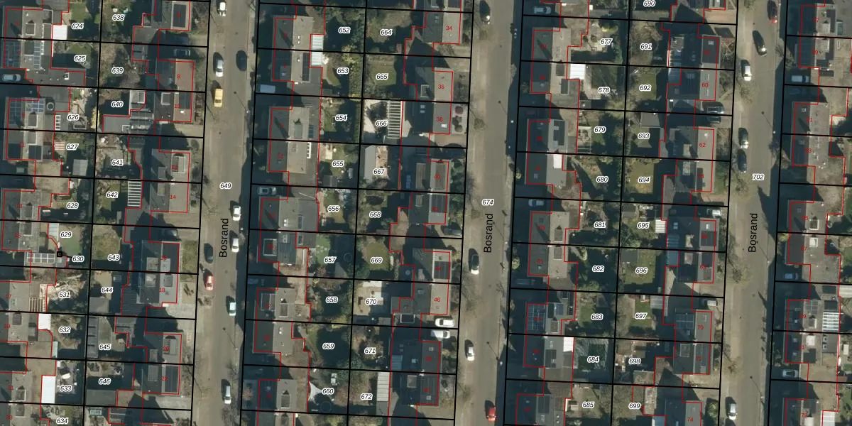 Bosrand 42 is gelegen op kadastraal perceel GDP00F668. Deze kadastrale aanduiding is uniek en wordt gebruikt door het Kadaster om eigendomsrechten en andere zakelijke rechten vast te leggen. Het perceel maakt onderdeel uit van de kadastrale gemeente Geldrop.
