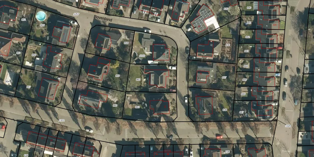 Het perceel waarop Bovenland 21 staat heeft een oppervlakte van 545 m². Dit is een groot perceel. De perceeloppervlakte wordt geregistreerd door het Kadaster. Gedetailleerde informatie over de maten van dit perceel kunt u vinden in het rapport Kadastrale kaart met maatvoering van Bovenland 21.