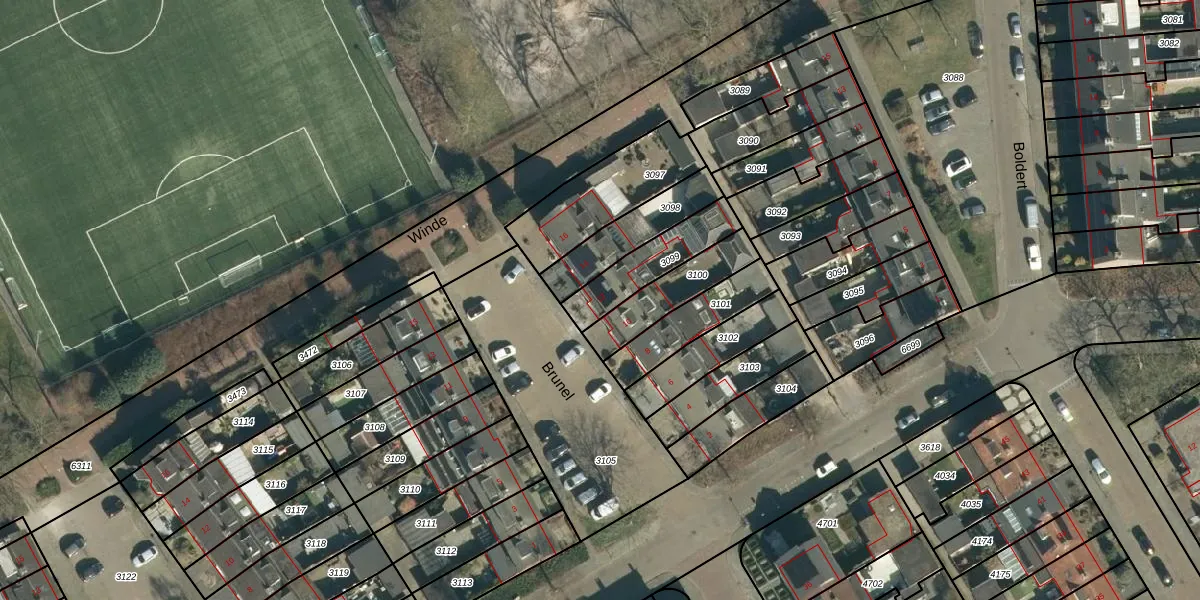 Het perceel waarop Brunel 12 staat heeft een oppervlakte van 195 m². Dit is een middelgroot perceel. De perceeloppervlakte wordt geregistreerd door het Kadaster. Gedetailleerde informatie over de maten van dit perceel kunt u vinden in het rapport Kadastrale kaart met maatvoering van Brunel 12.