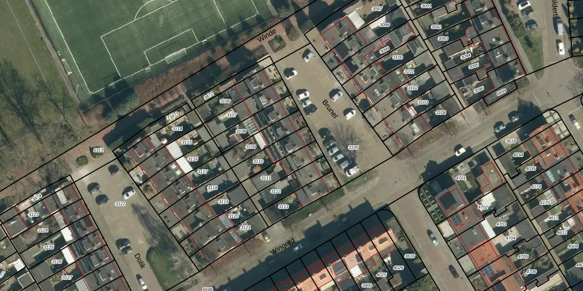 Het perceel waarop Brunel 7 staat heeft een oppervlakte van 179 m². Dit is een middelgroot perceel. De perceeloppervlakte wordt geregistreerd door het Kadaster. Gedetailleerde informatie over de maten van dit perceel kunt u vinden in het rapport Kadastrale kaart met maatvoering van Brunel 7.