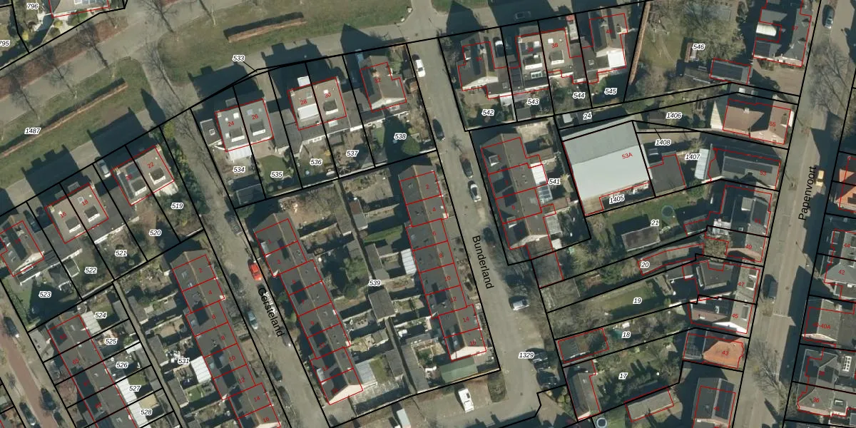 Het perceel waarop Bunderland 4 staat heeft een oppervlakte van 2472 m². Dit is een zeer groot perceel. De perceeloppervlakte wordt geregistreerd door het Kadaster. Gedetailleerde informatie over de maten van dit perceel kunt u vinden in het rapport Kadastrale kaart met maatvoering van Bunderland 4.