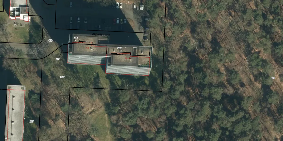 Het perceel waarop Carpinistraat 130 staat heeft een oppervlakte van 6045 m². Dit is een zeer groot perceel. De perceeloppervlakte wordt geregistreerd door het Kadaster. Gedetailleerde informatie over de maten van dit perceel kunt u vinden in het rapport Kadastrale kaart met maatvoering van Carpinistraat 130.