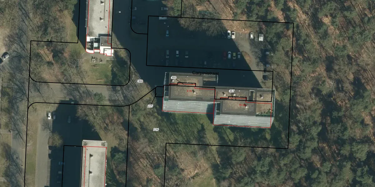 Carpinistraat 16 is gelegen op kadastraal perceel GDP00G226. Deze kadastrale aanduiding is uniek en wordt gebruikt door het Kadaster om eigendomsrechten en andere zakelijke rechten vast te leggen. Het perceel maakt onderdeel uit van de kadastrale gemeente Geldrop.