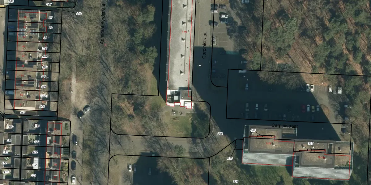 Het perceel waarop Carpinistraat 17 staat heeft een oppervlakte van 8990 m². Dit is een zeer groot perceel. De perceeloppervlakte wordt geregistreerd door het Kadaster. Gedetailleerde informatie over de maten van dit perceel kunt u vinden in het rapport Kadastrale kaart met maatvoering van Carpinistraat 17.