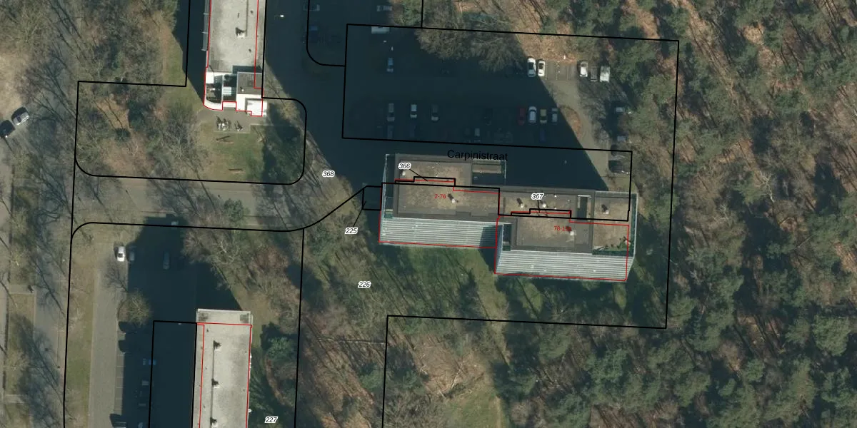 Het perceel waarop Carpinistraat 34 staat heeft een oppervlakte van 6045 m². Dit is een zeer groot perceel. De perceeloppervlakte wordt geregistreerd door het Kadaster. Gedetailleerde informatie over de maten van dit perceel kunt u vinden in het rapport Kadastrale kaart met maatvoering van Carpinistraat 34.