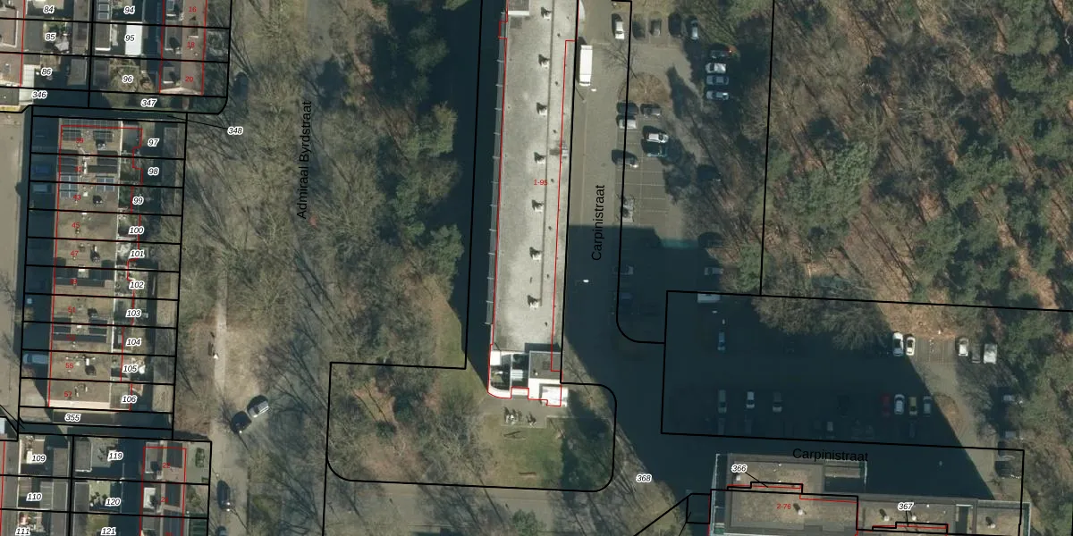 Het perceel waarop Carpinistraat 37 staat heeft een oppervlakte van 8990 m². Dit is een zeer groot perceel. De perceeloppervlakte wordt geregistreerd door het Kadaster. Gedetailleerde informatie over de maten van dit perceel kunt u vinden in het rapport Kadastrale kaart met maatvoering van Carpinistraat 37.