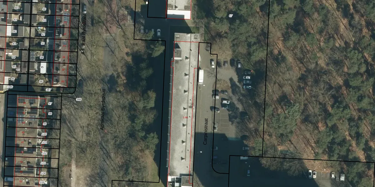 Het perceel waarop Carpinistraat 43 staat heeft een oppervlakte van 8990 m². Dit is een zeer groot perceel. De perceeloppervlakte wordt geregistreerd door het Kadaster. Gedetailleerde informatie over de maten van dit perceel kunt u vinden in het rapport Kadastrale kaart met maatvoering van Carpinistraat 43.