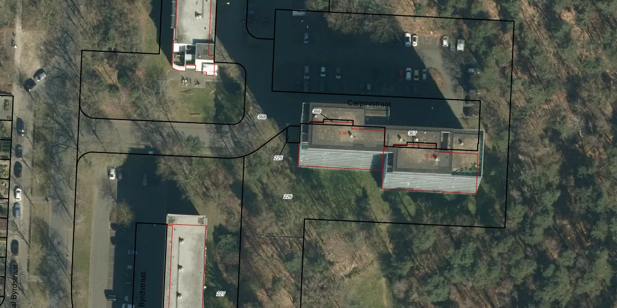 Het perceel waarop Carpinistraat 50 staat heeft een oppervlakte van 6045 m². Dit is een zeer groot perceel. De perceeloppervlakte wordt geregistreerd door het Kadaster. Gedetailleerde informatie over de maten van dit perceel kunt u vinden in het rapport Kadastrale kaart met maatvoering van Carpinistraat 50.