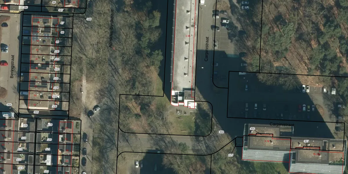 Het perceel waarop Carpinistraat 83 staat heeft een oppervlakte van 8990 m². Dit is een zeer groot perceel. De perceeloppervlakte wordt geregistreerd door het Kadaster. Gedetailleerde informatie over de maten van dit perceel kunt u vinden in het rapport Kadastrale kaart met maatvoering van Carpinistraat 83.