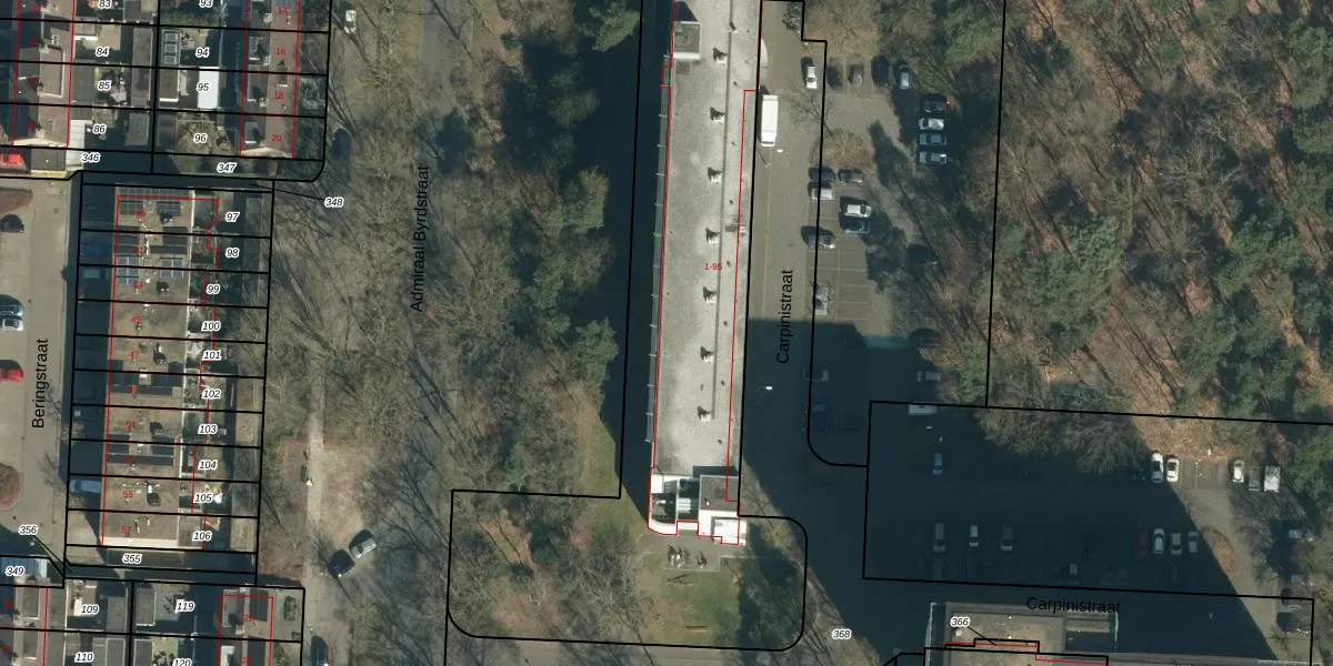 Het perceel waarop Carpinistraat 87 staat heeft een oppervlakte van 8990 m². Dit is een zeer groot perceel. De perceeloppervlakte wordt geregistreerd door het Kadaster. Gedetailleerde informatie over de maten van dit perceel kunt u vinden in het rapport Kadastrale kaart met maatvoering van Carpinistraat 87.