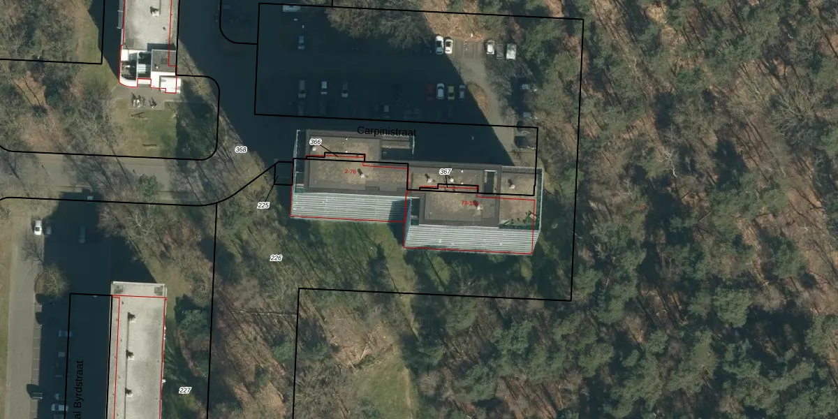 Het perceel waarop Carpinistraat 90 staat heeft een oppervlakte van 6045 m². Dit is een zeer groot perceel. De perceeloppervlakte wordt geregistreerd door het Kadaster. Gedetailleerde informatie over de maten van dit perceel kunt u vinden in het rapport Kadastrale kaart met maatvoering van Carpinistraat 90.