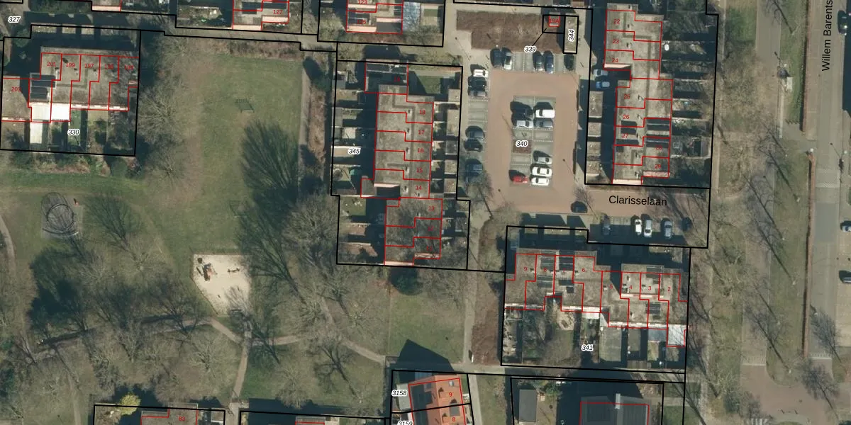 Het perceel waarop Clarisselaan 13 staat heeft een oppervlakte van 1426 m². Dit is een zeer groot perceel. De perceeloppervlakte wordt geregistreerd door het Kadaster. Gedetailleerde informatie over de maten van dit perceel kunt u vinden in het rapport Kadastrale kaart met maatvoering van Clarisselaan 13.