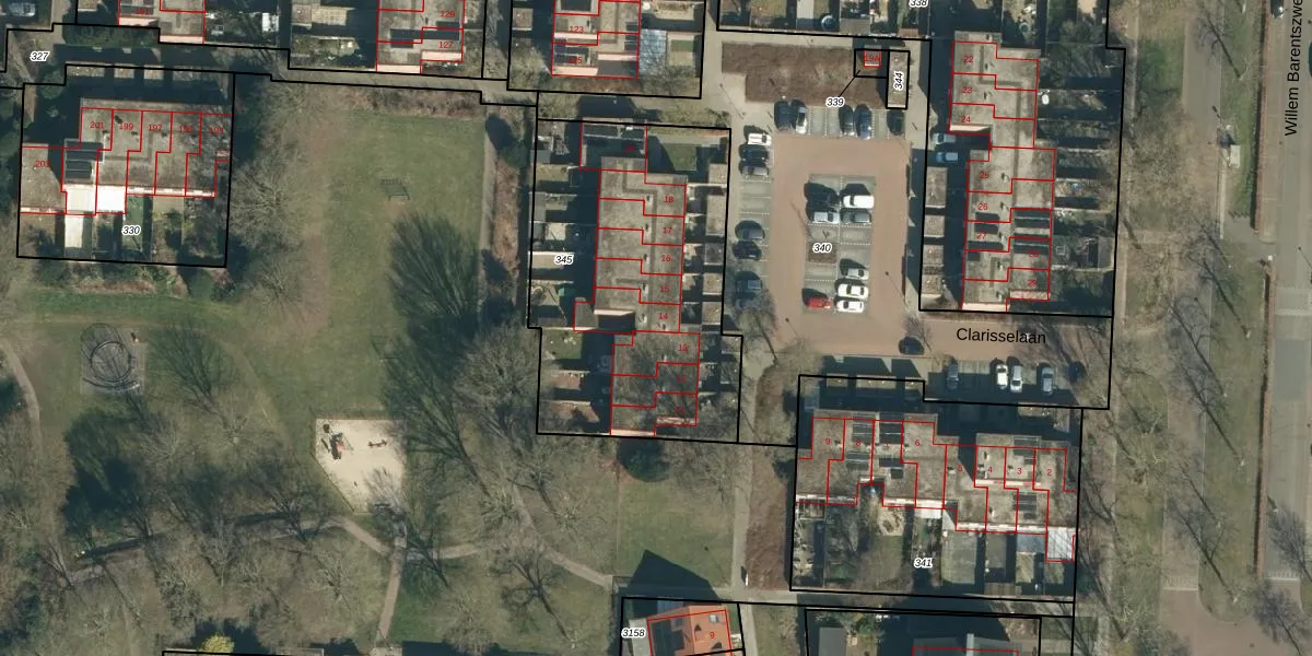 Het perceel waarop Clarisselaan 14 staat heeft een oppervlakte van 1426 m². Dit is een zeer groot perceel. De perceeloppervlakte wordt geregistreerd door het Kadaster. Gedetailleerde informatie over de maten van dit perceel kunt u vinden in het rapport Kadastrale kaart met maatvoering van Clarisselaan 14.