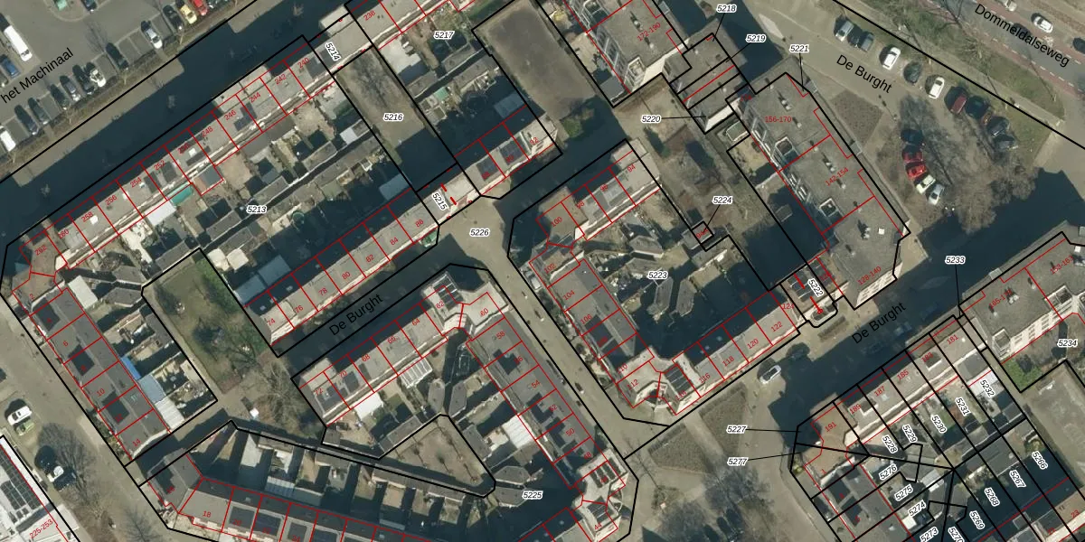 De Burght 102 is gelegen op kadastraal perceel GDP00D5223. Deze kadastrale aanduiding is uniek en wordt gebruikt door het Kadaster om eigendomsrechten en andere zakelijke rechten vast te leggen. Het perceel maakt onderdeel uit van de kadastrale gemeente Geldrop.