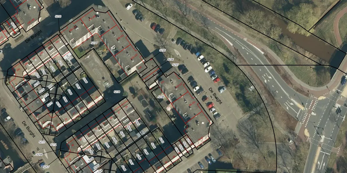 De Burght 103 is gelegen op kadastraal perceel GDP00D5238. Deze kadastrale aanduiding is uniek en wordt gebruikt door het Kadaster om eigendomsrechten en andere zakelijke rechten vast te leggen. Het perceel maakt onderdeel uit van de kadastrale gemeente Geldrop.