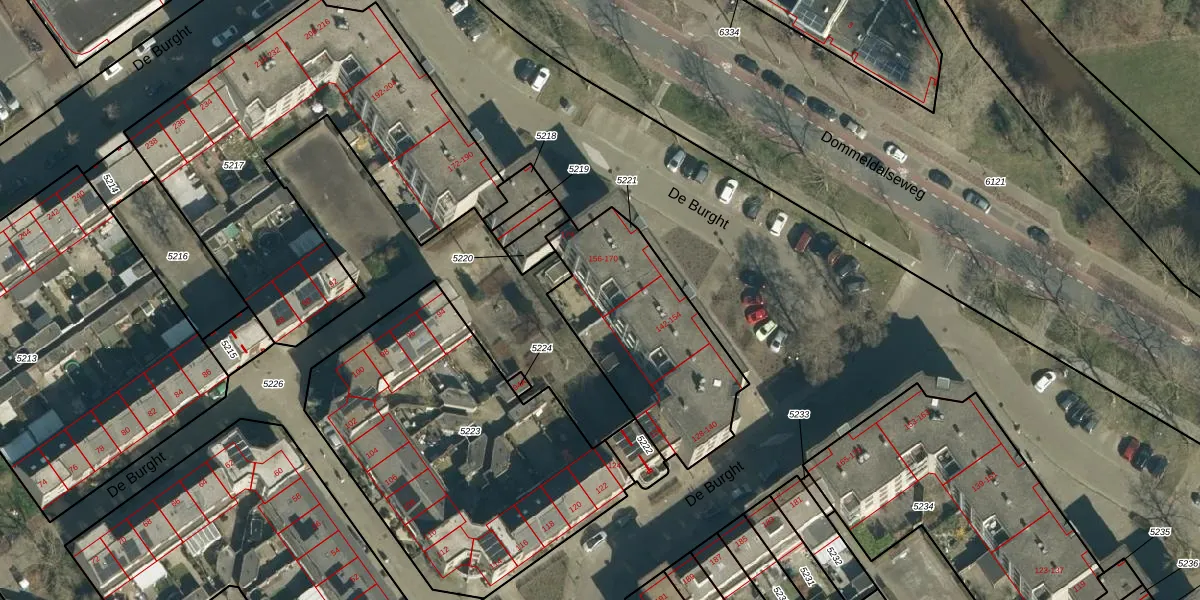 De Burght 166 is gelegen op kadastraal perceel GDP00D5221. Deze kadastrale aanduiding is uniek en wordt gebruikt door het Kadaster om eigendomsrechten en andere zakelijke rechten vast te leggen. Het perceel maakt onderdeel uit van de kadastrale gemeente Geldrop.