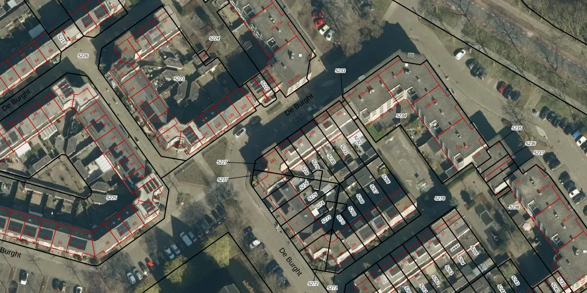 De Burght 187 is gelegen op kadastraal perceel GDP00D5229. Deze kadastrale aanduiding is uniek en wordt gebruikt door het Kadaster om eigendomsrechten en andere zakelijke rechten vast te leggen. Het perceel maakt onderdeel uit van de kadastrale gemeente Geldrop.