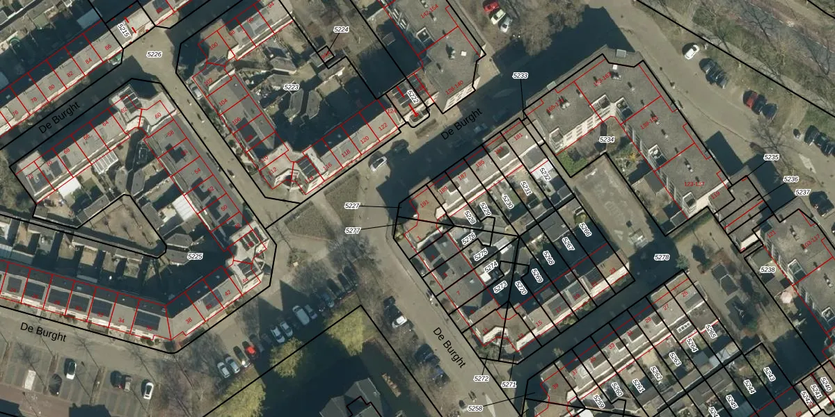 Het perceel waarop De Burght 191 staat heeft een oppervlakte van 70 m². Dit is een klein perceel. De perceeloppervlakte wordt geregistreerd door het Kadaster. Gedetailleerde informatie over de maten van dit perceel kunt u vinden in het rapport Kadastrale kaart met maatvoering van De Burght 191.