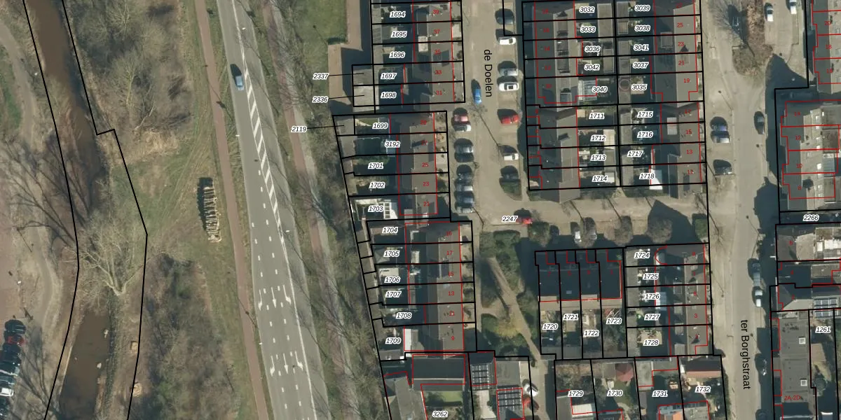 de Doelen 21 is gelegen op kadastraal perceel GDP00F1703. Deze kadastrale aanduiding is uniek en wordt gebruikt door het Kadaster om eigendomsrechten en andere zakelijke rechten vast te leggen. Het perceel maakt onderdeel uit van de kadastrale gemeente Geldrop.