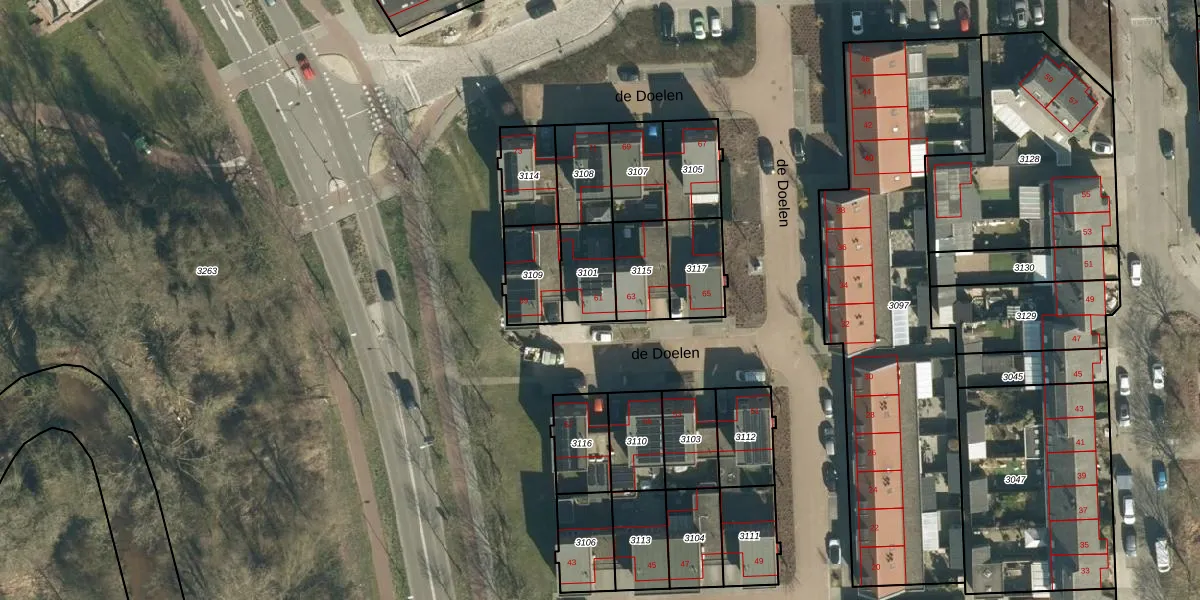 de Doelen 61 is gelegen op kadastraal perceel GDP00F3101. Deze kadastrale aanduiding is uniek en wordt gebruikt door het Kadaster om eigendomsrechten en andere zakelijke rechten vast te leggen. Het perceel maakt onderdeel uit van de kadastrale gemeente Geldrop.