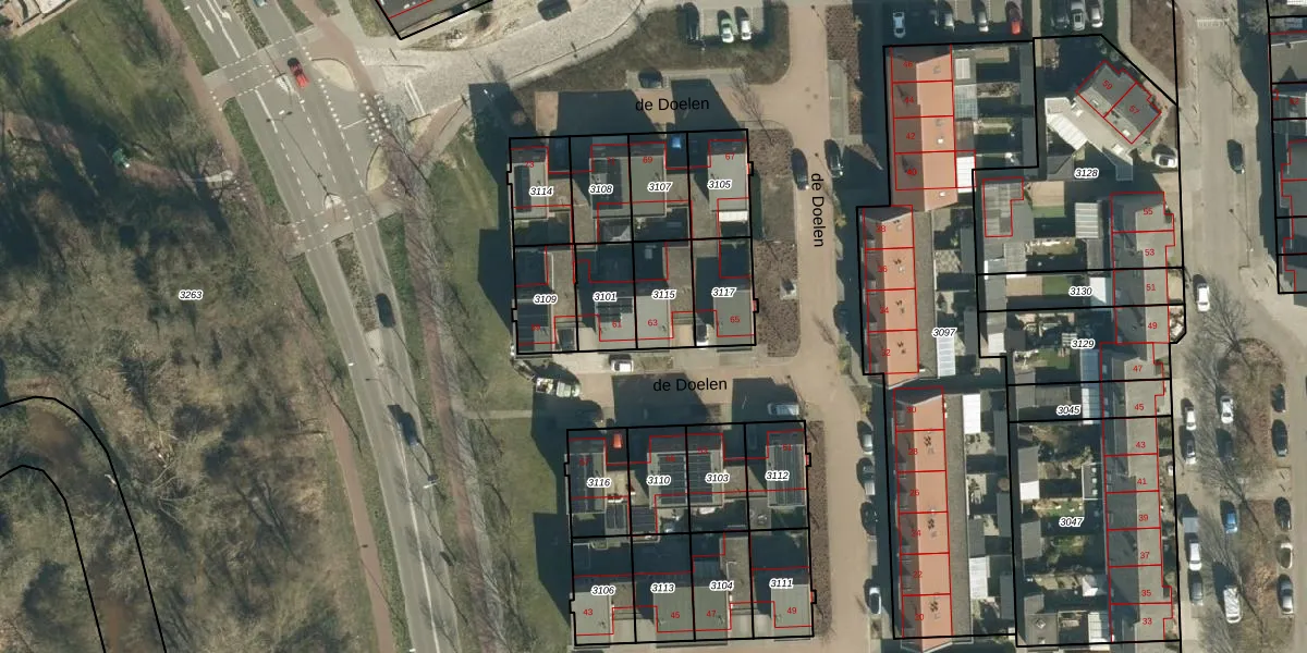 Gebruik de zoekbalk of klik op een perceel voor informatie over de adressen binnen dit perceel.