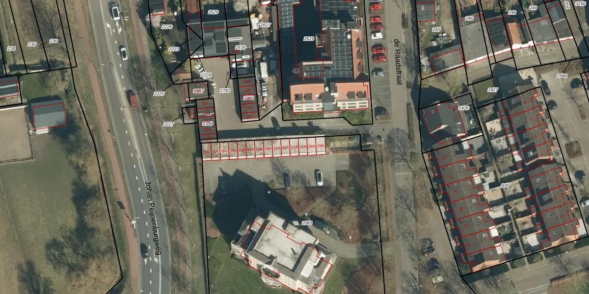 de Raadstraat 22-A is gelegen op kadastraal perceel GDP00F2083. Deze kadastrale aanduiding is uniek en wordt gebruikt door het Kadaster om eigendomsrechten en andere zakelijke rechten vast te leggen. Het perceel maakt onderdeel uit van de kadastrale gemeente Geldrop.