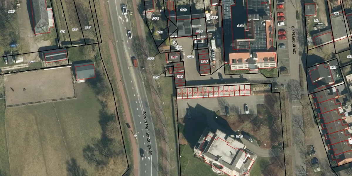 de Raadstraat 28-W is gelegen op kadastraal perceel GDP00F2358. Deze kadastrale aanduiding is uniek en wordt gebruikt door het Kadaster om eigendomsrechten en andere zakelijke rechten vast te leggen. Het perceel maakt onderdeel uit van de kadastrale gemeente Geldrop.