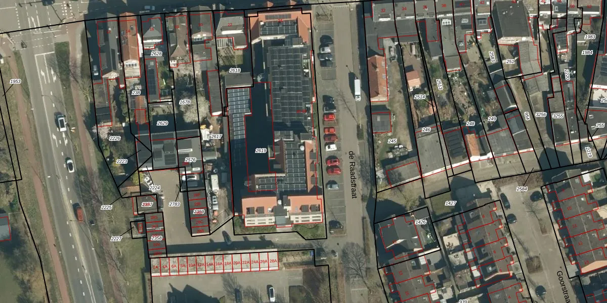 de Raadstraat 36 is gelegen op kadastraal perceel GDP00F2619. Deze kadastrale aanduiding is uniek en wordt gebruikt door het Kadaster om eigendomsrechten en andere zakelijke rechten vast te leggen. Het perceel maakt onderdeel uit van de kadastrale gemeente Geldrop.