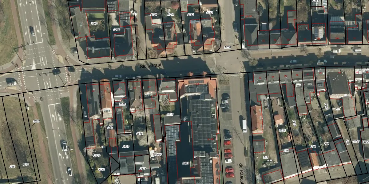 Het perceel waarop de Raadstraat 56 staat heeft een oppervlakte van 1972 m². Dit is een zeer groot perceel. De perceeloppervlakte wordt geregistreerd door het Kadaster. Gedetailleerde informatie over de maten van dit perceel kunt u vinden in het rapport Kadastrale kaart met maatvoering van de Raadstraat 56.