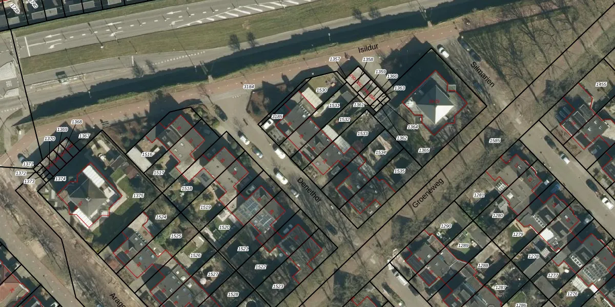 Gebruik de zoekbalk of klik op een perceel voor informatie over de adressen binnen dit perceel.