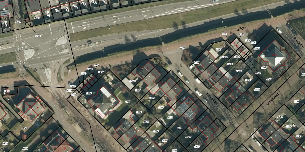 Gebruik de zoekbalk of klik op een perceel voor informatie over de adressen binnen dit perceel.