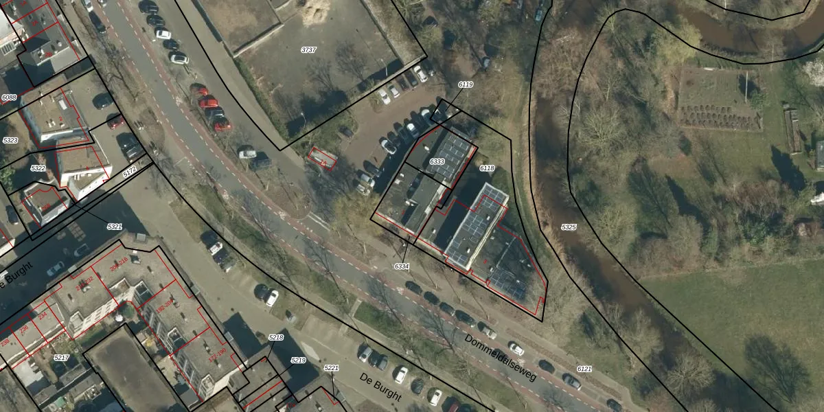 Dommeldalseweg 1 is gelegen op kadastraal perceel GDP00D6334. Deze kadastrale aanduiding is uniek en wordt gebruikt door het Kadaster om eigendomsrechten en andere zakelijke rechten vast te leggen. Het perceel maakt onderdeel uit van de kadastrale gemeente Geldrop.