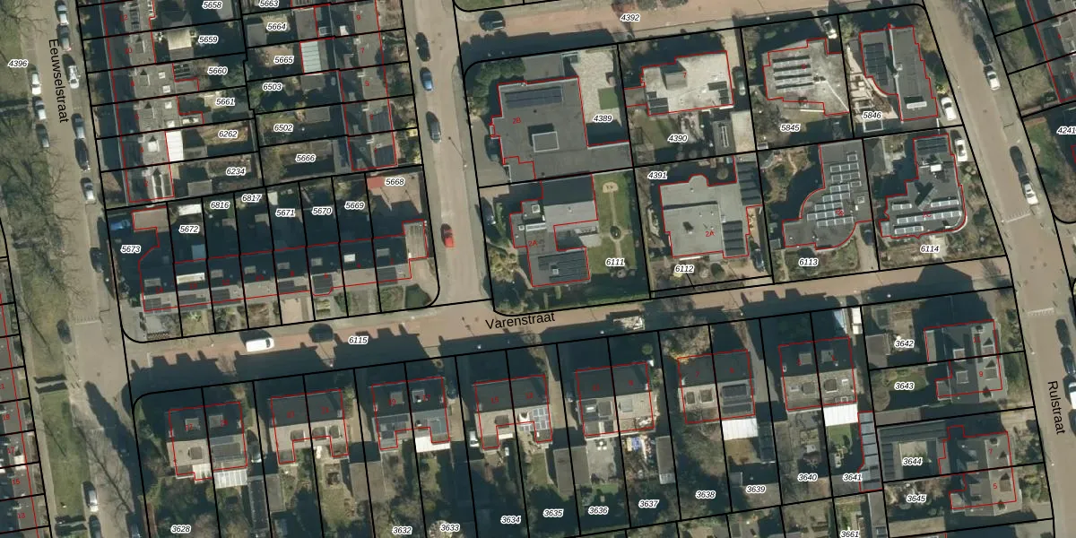 Gebruik de zoekbalk of klik op een perceel voor informatie over de adressen binnen dit perceel.