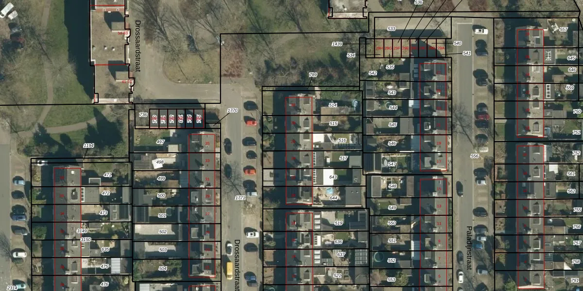 Drossaardstraat 26 is gelegen op kadastraal perceel GDP00E516. Deze kadastrale aanduiding is uniek en wordt gebruikt door het Kadaster om eigendomsrechten en andere zakelijke rechten vast te leggen. Het perceel maakt onderdeel uit van de kadastrale gemeente Geldrop.
