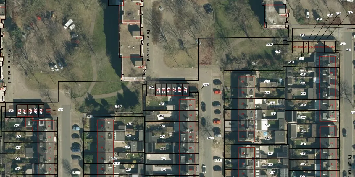 Drossaardstraat 35-B is gelegen op kadastraal perceel GDP00E734. Deze kadastrale aanduiding is uniek en wordt gebruikt door het Kadaster om eigendomsrechten en andere zakelijke rechten vast te leggen. Het perceel maakt onderdeel uit van de kadastrale gemeente Geldrop.