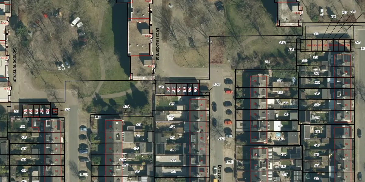 Drossaardstraat 35-C is gelegen op kadastraal perceel GDP00E733. Deze kadastrale aanduiding is uniek en wordt gebruikt door het Kadaster om eigendomsrechten en andere zakelijke rechten vast te leggen. Het perceel maakt onderdeel uit van de kadastrale gemeente Geldrop.