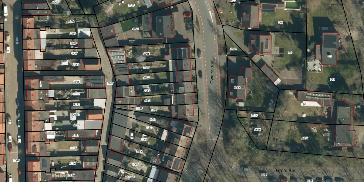 Dwarsstraat 111 is gelegen op kadastraal perceel GDP00F1058. Deze kadastrale aanduiding is uniek en wordt gebruikt door het Kadaster om eigendomsrechten en andere zakelijke rechten vast te leggen. Het perceel maakt onderdeel uit van de kadastrale gemeente Geldrop.