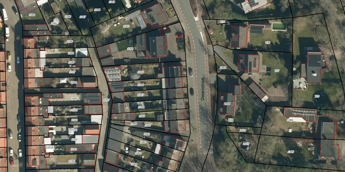 Dwarsstraat 115 is gelegen op kadastraal perceel GDP00F1056. Deze kadastrale aanduiding is uniek en wordt gebruikt door het Kadaster om eigendomsrechten en andere zakelijke rechten vast te leggen. Het perceel maakt onderdeel uit van de kadastrale gemeente Geldrop.